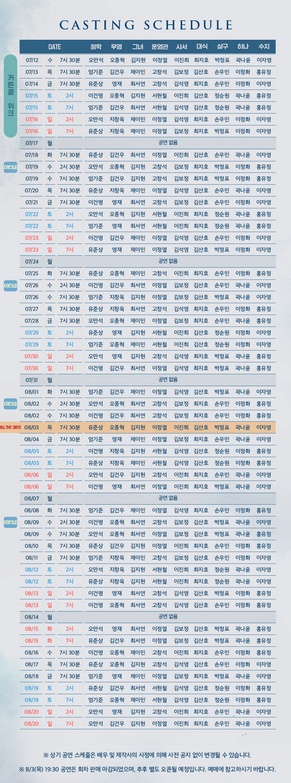 ※ 7/12(수) 2시 30분, 8/16(수) 2시 30분 공연은 없음