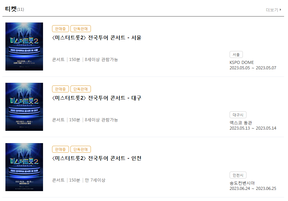 3. 미스터트롯2 전국투어 콘서트 예매하기