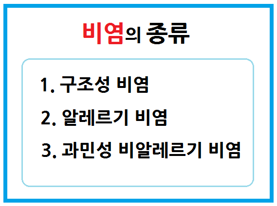 - 코의 점막이 예민해져 특정 물질에 반응하면서 증상이 유발