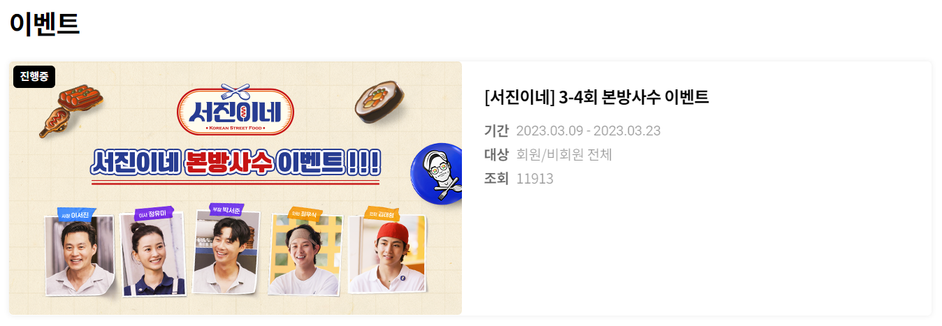 우연히 서진이네 검색하다 본방사수 이벤트 소식을 접했어요.