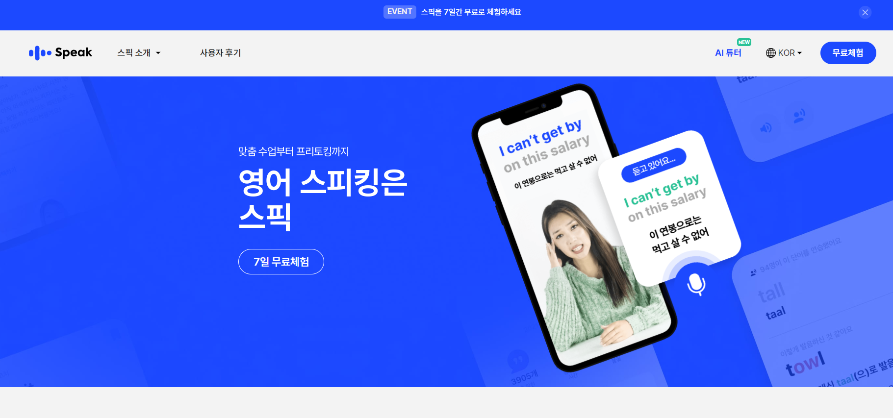 Speak은 언어학습을 챗GPT를 활용해 할 수 있습니다. 최근 많은 유튜버들이 챗GPT를 활용한 영어회화교육에 대한 콘텐츠를 업로드하고 있습니다. 직접 외국에 가지 않고도 실시간 대화와 사용자의 오류를 함께 수정해 준다면 언어를 학습하는 데 매우 유용할 것입니다.