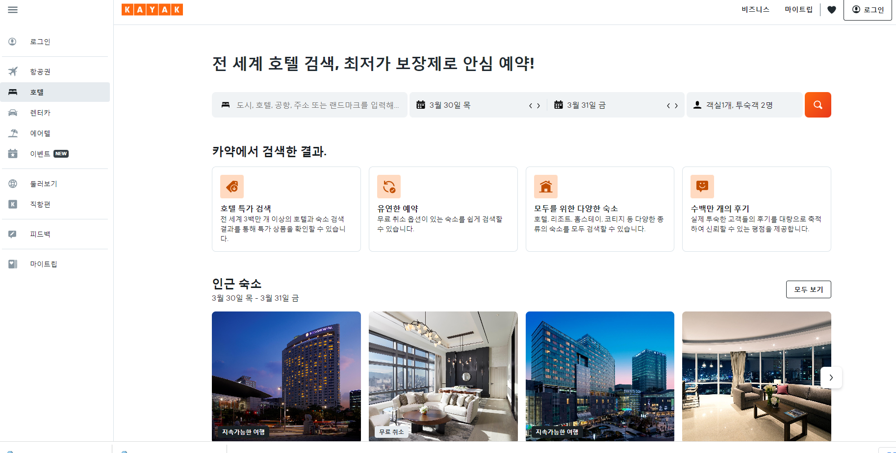 KAYAK을 통해 전 세계 항공권, 호텔 검색과 렌터카 예약까지 할 수 있게 됩니다.