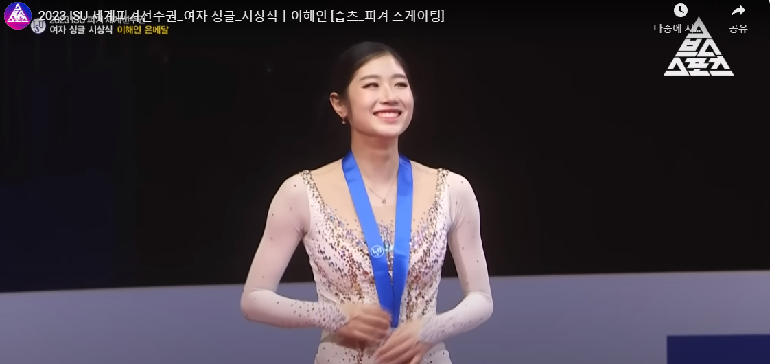 2023년 피겨 세계선수권대회 여자 싱글 시상식, 이해인 은메달, 출처:스브스스포츠