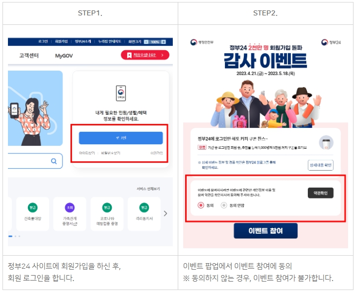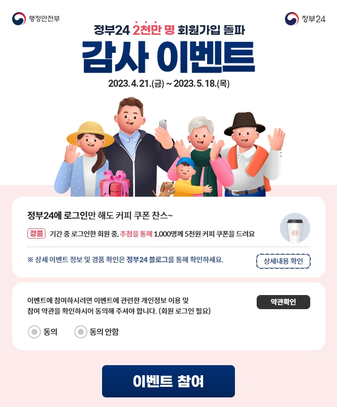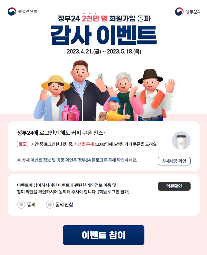 - 이벤트 참여방법 : 정부24 회원 로그인 >> 이벤트 참여 팝업에 참여 동의에 체크하면 완료