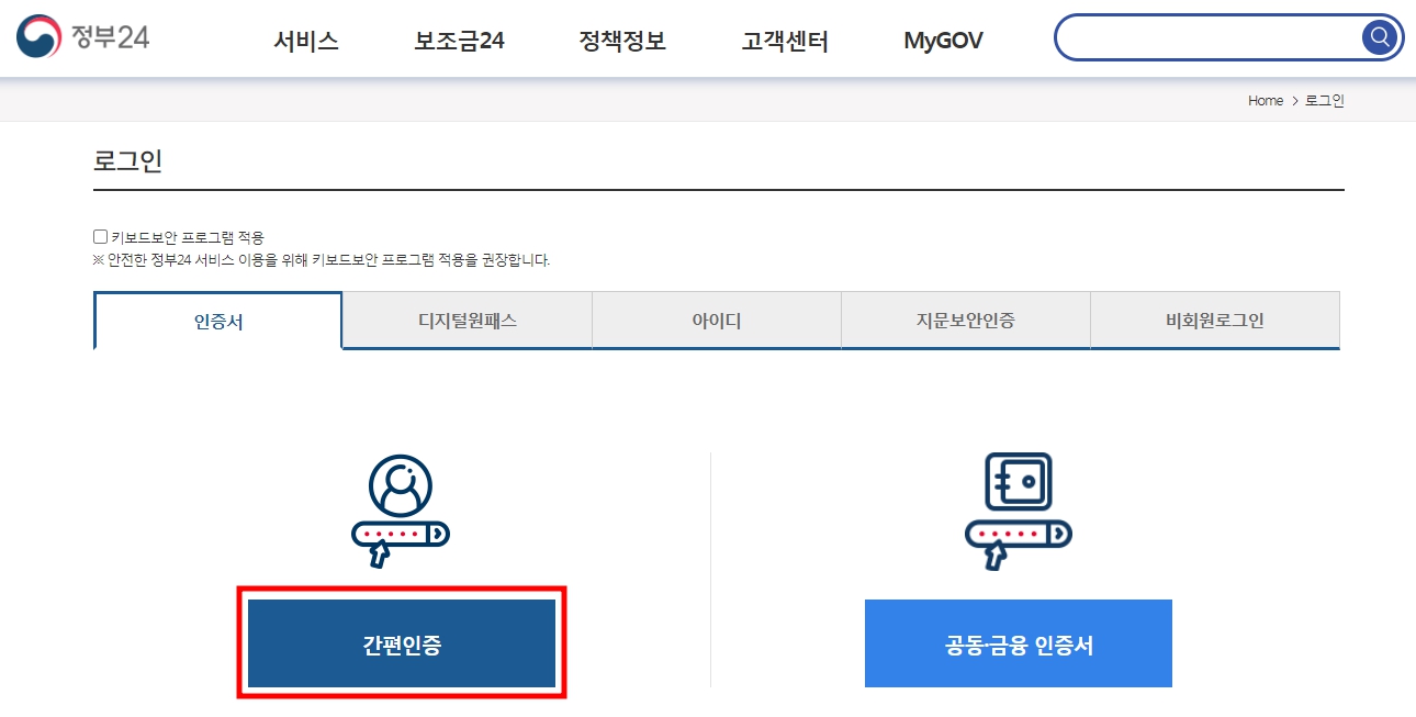 ※ 정부24 간편인증으로 로그인 쉽게 하고 이벤트 참여하기