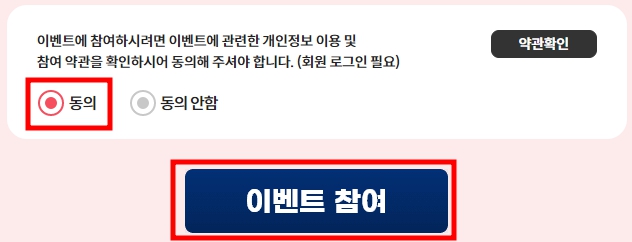 - 이벤트 참여 동의를 하셔야 이벤트 참여 가능