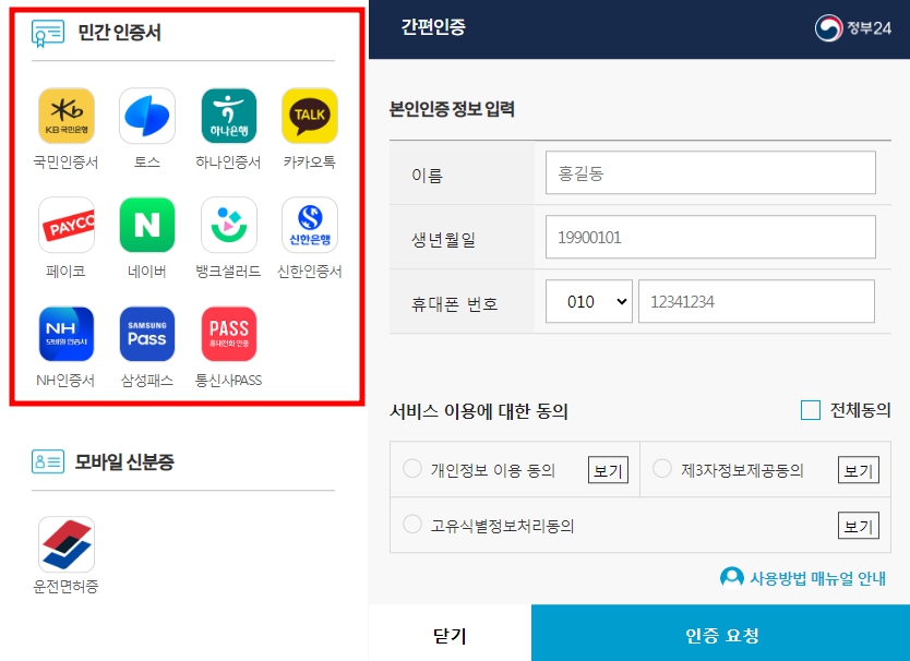 - 정부 24에서 휴대폰 번호 입력 및 수정 가능