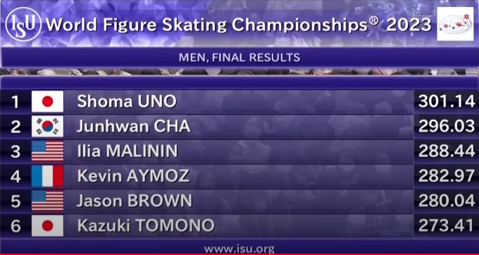 <2023년 피겨 세계선수권대회 남자 싱글 결과>