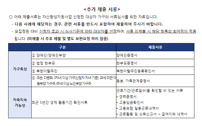 - 중복참여 불가항목 : 서울시 '희망두배청년통장', 고용노동부 '청년내일채움공제' 등 유사 자산형성지원사업 등