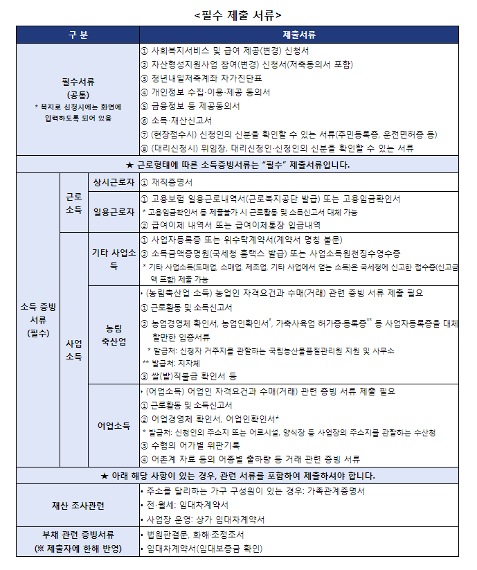 위 조건에 맞는 청년분이 시라면 온라인 복지로 사이트나 해당 주민센터를 통해 초기 상담 후 필요서류 추가 제출 잘하셔서 목돈 마련 꼭 하시기 바랍니다.