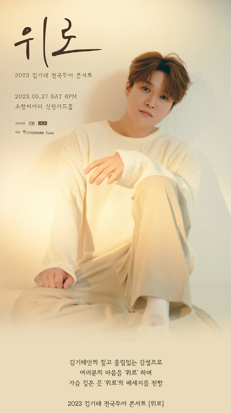 2023 김기태 전국투어 콘서트 [위로] 관람하시고 마음 속 위로와 감동까지 받아가시기 바랍니다.