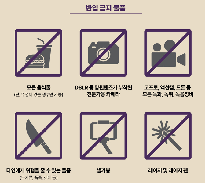 • 생수 이외 모든 음식 반입 금지