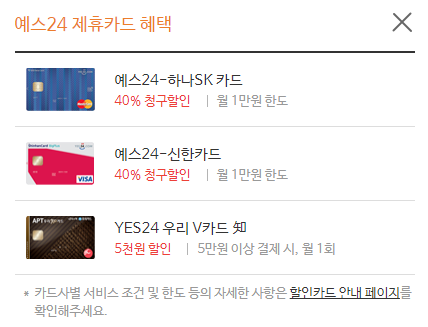 • 무이자할부 : 삼성, 현대, 신한, 비씨, 하나, 롯데, 국민, 농협, 광주, 전북카드 5만 원 이상 결제 시 2~7개월 차등 적용